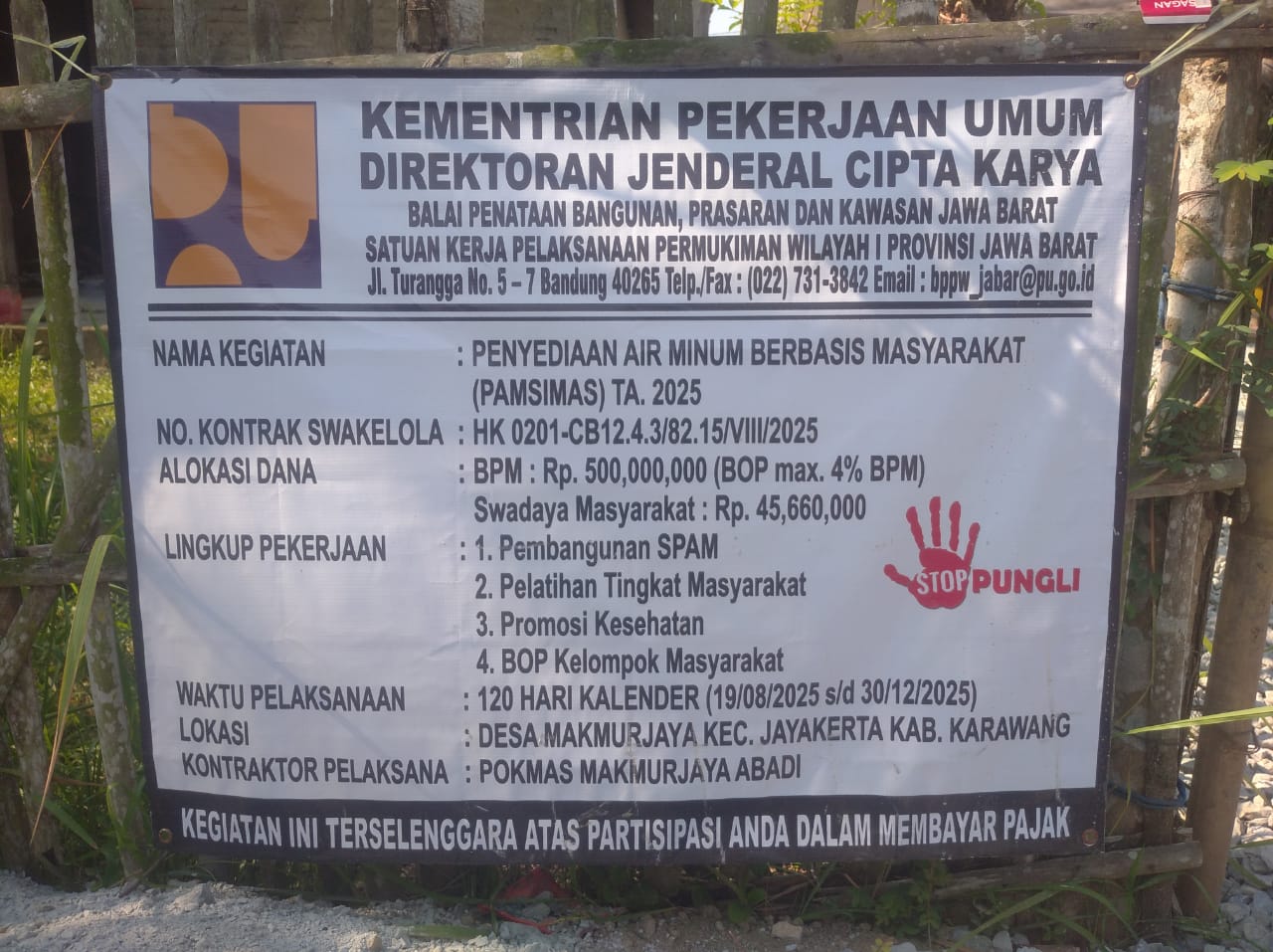 Salah satu proyek pelaksanaannya yang berada di Desa Makmurjaya, Kecamatan Jayakerta, Kabupaten Karawang, Provinsi Jawa Barat, tengah menuai perhatian serius.
