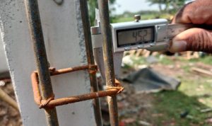 Saat Junaedi melakukan pengukuran dengan menggunakan alat sigma ternyata hasilnya menunjukkan besi untuk cor sloop berukuran 8. mm, bukan 10 mm, sedangkan besi cincin pengikat ternyata hanya 4,52 mm bukan 6mm Apakah di RAB memang ukuran besi sloop untuk Rutilahu itu ukurannya 8 mm bukan 10mm, karena biasa besi sloop untuk Rutilahu itu ukuranya 10 mm. Kalau pakai besi ukuran 8 mm berarti proyek Rutilahu tersebut mengindikasikan adanya ketidaksesuaian material yang dapat berdampak pada kualitas dan daya tahan bangunan.