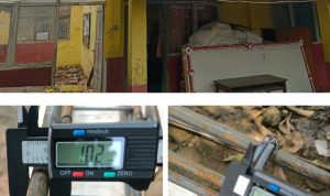 Selain itu, pekerja juga menyebutkan bahwa pemasangan jendela menggunakan besi lintel ukuran 12 mm dan besi cincin sangkan ukuran 8 mm, namun hasil pengukuran dengan alat Sigmat menunjukkan fakta berbeda — besi lintel hanya berukuran 10,2 mm, sedangkan besi cincin sangkan hanya 4,7 mm.
